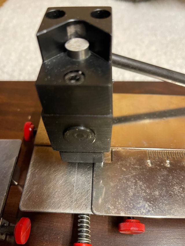 Màquina cantonera de metal. - Construcción robusta. - Mecanismo de precisión. - con accesorios