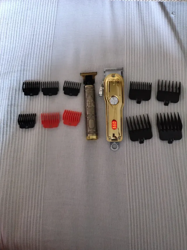 - Incluye dos máquinas de cortar pelo, una dorada y otra con diseño grabado.