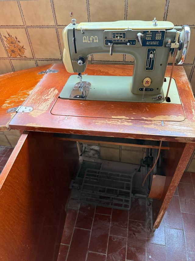 Detalles del productoVendo máquina de coser ALFA modelo Alfamatic, en mueble original de madera con pedal. Funciona correctamente y es ideal tanto para uso como para colección o decoración vintage. El mueble presenta signos de uso y desgaste (como se aprecia en las fotos), pero la máquina se conserva en buen estado general. Perfecta para amantes de la costura y coleccionistas de piezas clásicas.