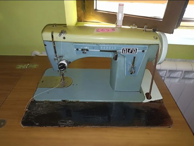 Máquina de coser Alfa antigua. - Marca: Alfa - Modelo antiguo - Color azul y beige