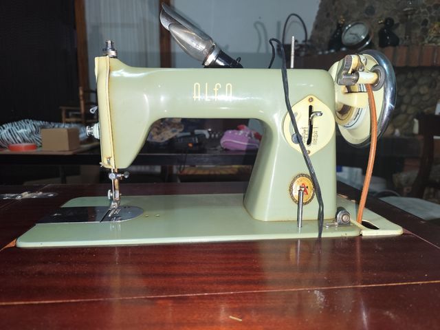 Detalles del productoPreciosa máquina de coser Alfa antigua, en color verde claro. Ideal para coleccionistas o amantes de la costura vintage. Hay que repararla, no funciona.