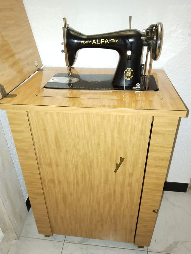 Preciosa máquina de coser Alfa antigua con mueble adaptado. Funciona.