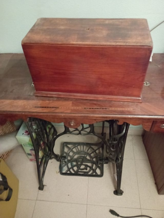Detalles del productoPreciosa máquina de coser antigua naumann de madera y metal.