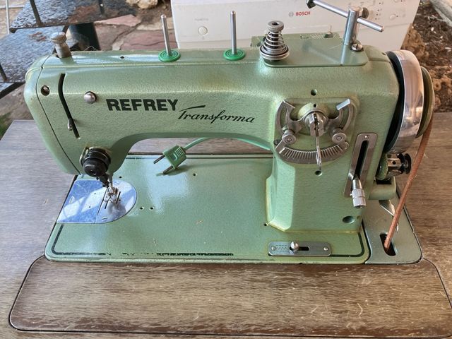 Detalles del productoPreciosa máquina de coser Refrey Transforma, en color verde menta. Se encuentra en buen estado de conservación.
