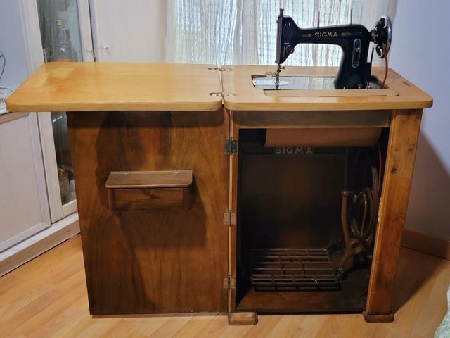 Detalles del productoPreciosa máquina de coser antigua de la marca SIGMA. Se encuentra en buen estado de conservación, lista para darle un nuevo hogar.