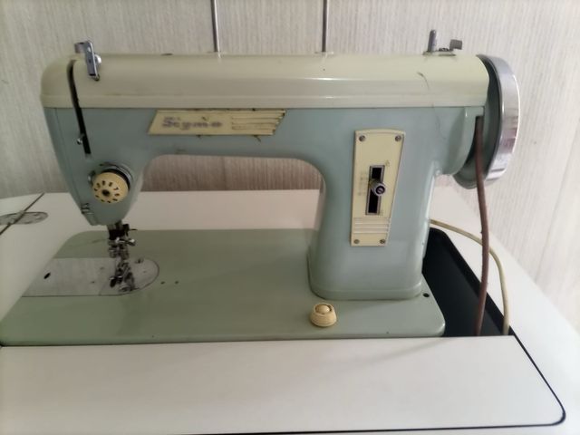 Detalles del productoPreciosa máquina de coser SIGMA antígua (años 70-80) en color azul claro y crema. Se encuentra en buen estado de conservación, considerando su antigüedad.