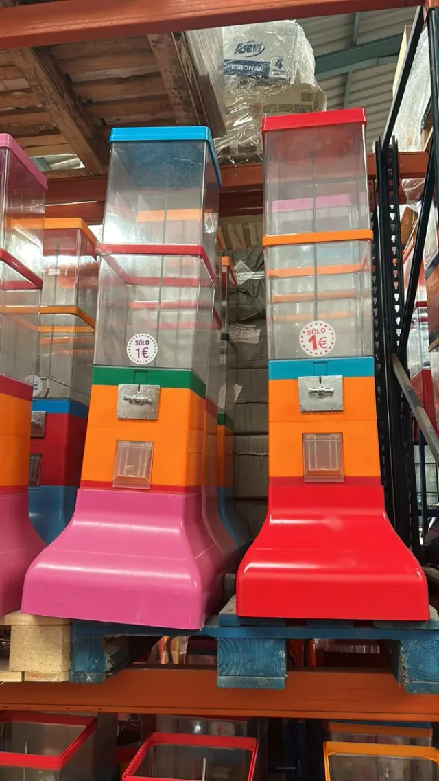 Máquina expendedora de bolas juguetes pequeños. - Modelo G1. - Compatible con bolas de 60 mm y 68 mm. - Base de color rosa. - Cuerpo superior transparente.