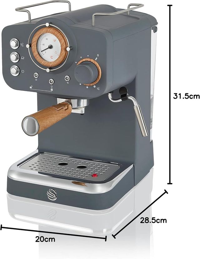 Detalles del productoSWAN SK22110GRYN - Máquina de café espresso nórdico con espumador de leche, control de presión de vapor, tanque de agua desmontable de 1.2 L, 1100 W, gris pizarra nórdica.