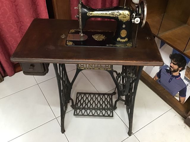 Maquina de coser de la marca SINGER hecha en Gran Bretaña. En perfecto estado de madera maciza y hierro forjado. En funcionamiento.