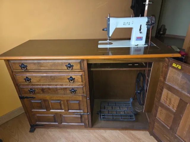 Detalles del productoMáquina de coser Alfa de estilo antiguo, con un diseño clásico y funcional. Ideal para coleccionistas o para quienes aprecian la calidad de las máquinas de antaño.