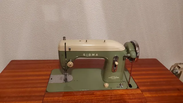 Máquina de coser antigua de madera y metal. SIGMA.