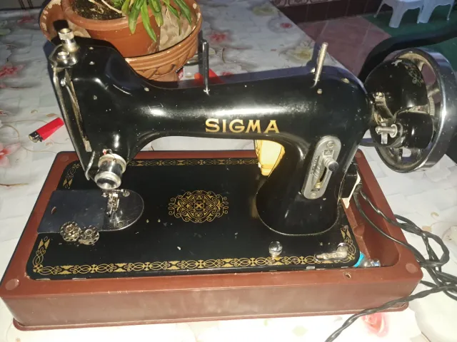 Detalles del productoMáquina de coser antigua de la marca SIGMA. Un modelo clásico con un diseño elegante.