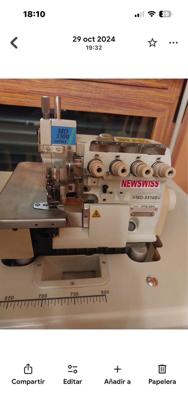 Detalles del productoMáquina de coser industrial de la marca New Swiss, modelo MO-3316E0.