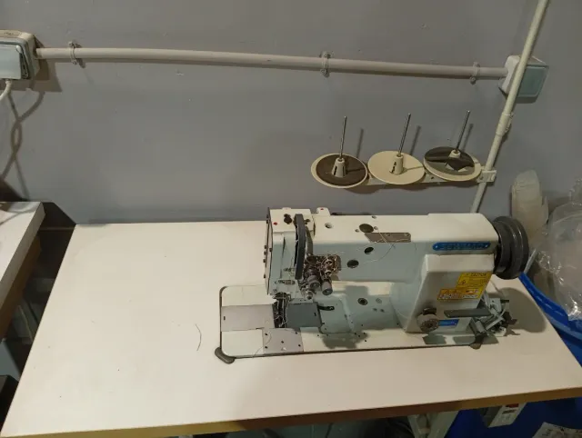 Detalles del productoMáquina de coser industrial con sistema de triple arrastre doble aguja con juego de galgas ancho 10mm y 15mm Ideal para trabajos pesados y materiales gruesos.