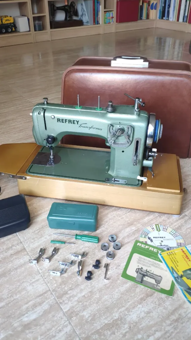 Detalles del productoMáquina de coser Refrey Transforma 427 en color verde. Incluye su maletín.