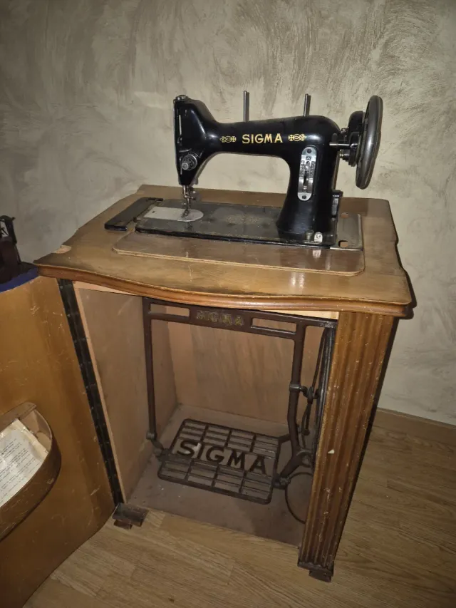 Máquina de coser Sigma antigua con mueble