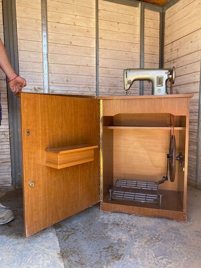 Mesa de máquina de coser completa. Máquina SINGER funcional plegable para ocultarla cuando no se le dé uso. Escritorio extensible. Sólo para recoger.