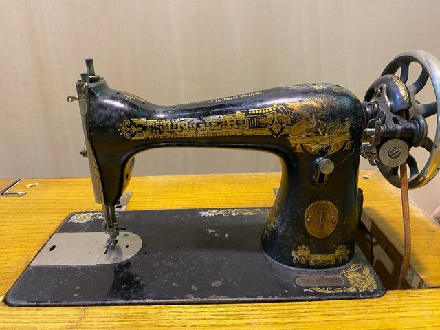 Detalles del productoMáquina de coser Singer antigua, un clásico para coleccionistas o amantes de la costura vintage. Su diseño negro con detalles dorados le da un toque elegante.