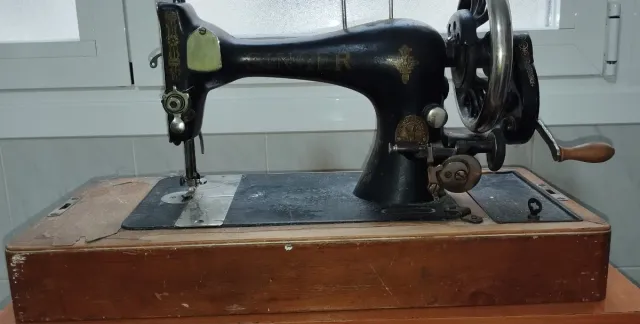 Detalles del productoMáquina de coser SINGER de estilo antiguo, con su base de madera.