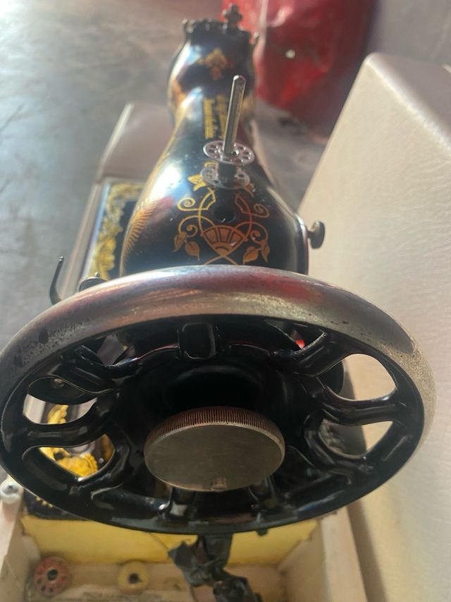 Detalles del productoPreciosa máquina de coser Singer de época, con un diseño clásico y elegante.