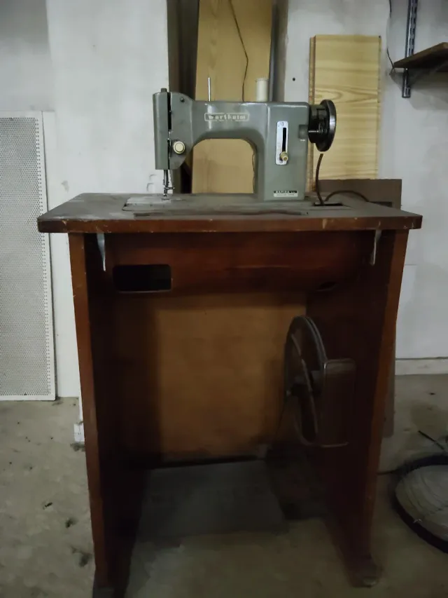 Detalles del productoMáquina de coser antigua de la marca Wertheim, con su mueble de madera.