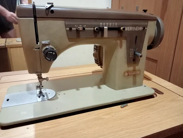 Máquina de coser Wertheim en color beige y marrón, con su mueble. - Marca: Wertheim - Incluye mueble.