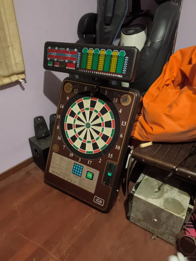 Máquina de dardos electrónica con pantalla digital. DA LOS FALLOS 4 Y 5 - Marcador LED para puntuaciones. - Diseño clásico en madera. - Teclado numérico para selección de juegos.