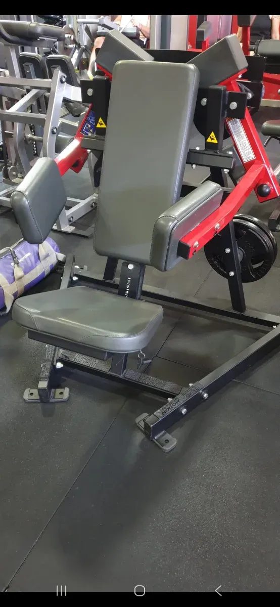 Detalles del productoMáquina de gimnasio para ejercicios de elevación de hombro. Estructura robusta y acolchado cómodo.