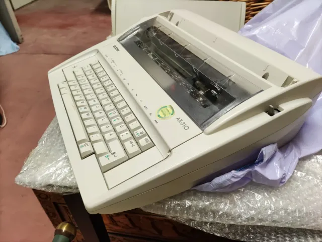 Máquina de escribir eléctrica Brother AX310 en color blanco. - Teclado QWERTY. - Pantalla LCD. - Carro de escritura.