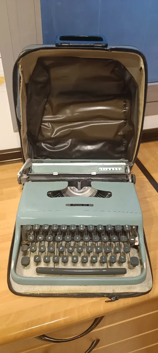Detalles del productoMáquina de escribir Olivetti Pluma 22, un modelo clásico de los años 50. Conserva su maletín original para su transporte y protección.