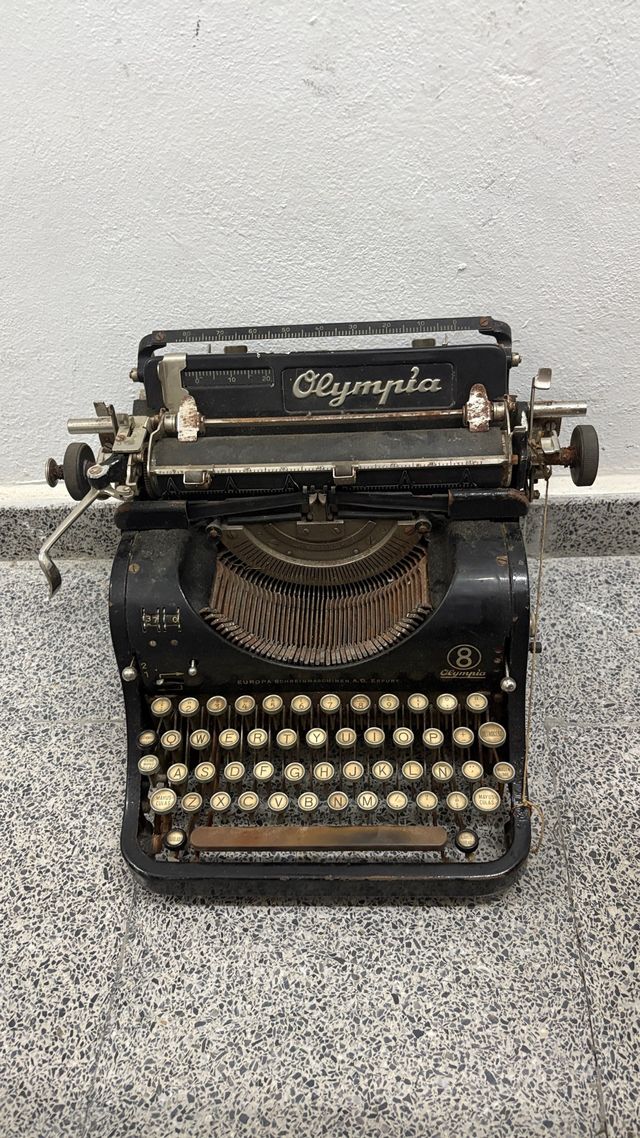 Máquina de escribir Olympia clásica, un objeto con historia. - Diseño vintage en color negro. - Teclado QWERTZ. - Incluye el número 8 en la parte frontal.