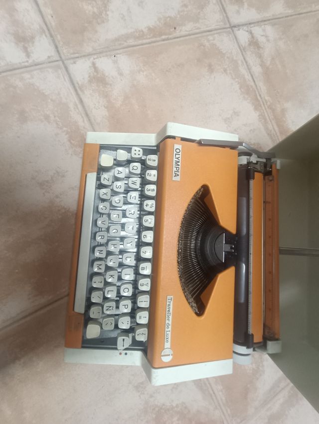 Detalles del productoMáquina de escribir portátil Olympia Traveler de Luxe en color naranja. Un clásico para escribir a mano.