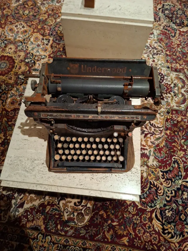 Detalles del productoMáquina de escribir antigua de la marca Underwood. Un objeto clásico con un diseño vintage. Requiere restauración por oxidación
