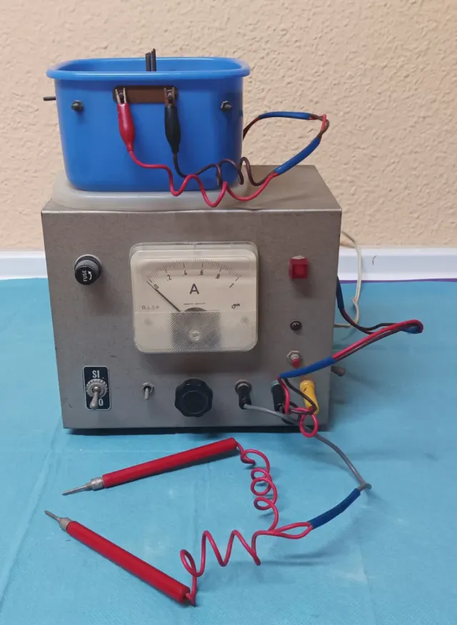 Detalles del productoEquipo de galvanoplastia con un diseño robusto y funcional. Incluye un amperímetro para medir la corriente.