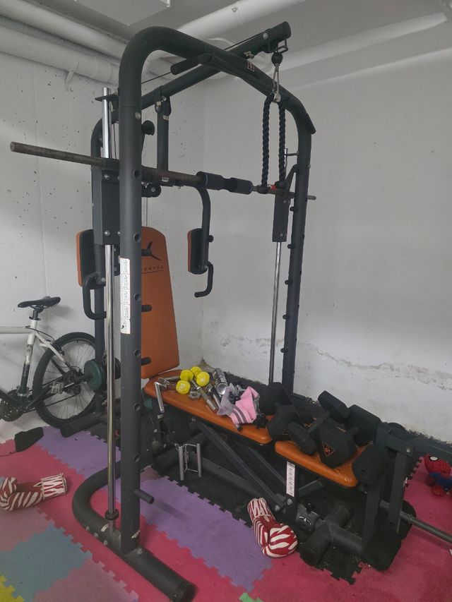 Detalles del productoEquipo de gimnasio completo para entrenar en casa. Ideal para diversos ejercicios.
