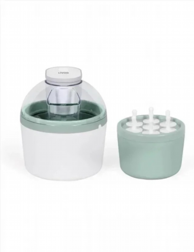 Livoo DOM461 - Máquina de hielo - para preparar helados, sorbetes y yogures congelados - Depósito de 1 L - con molde para 7 palitos helados Blanco/Gris