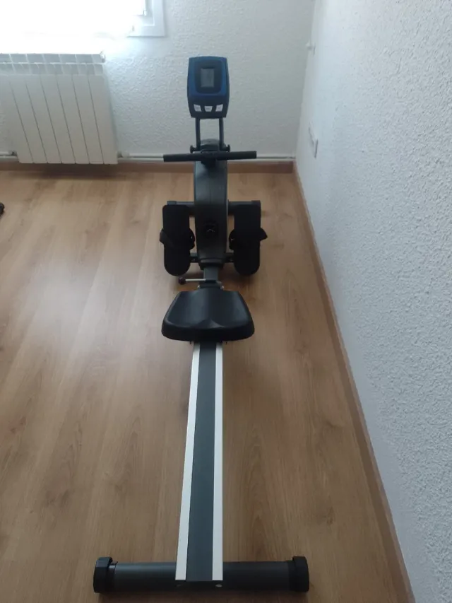 Máquina estática de remo con un diseño moderno y funcional. - Presión ajustable. - Pantalla en buen estado y funcionamiento. - Asiento ergonómico. - Reposapiés ajustables.