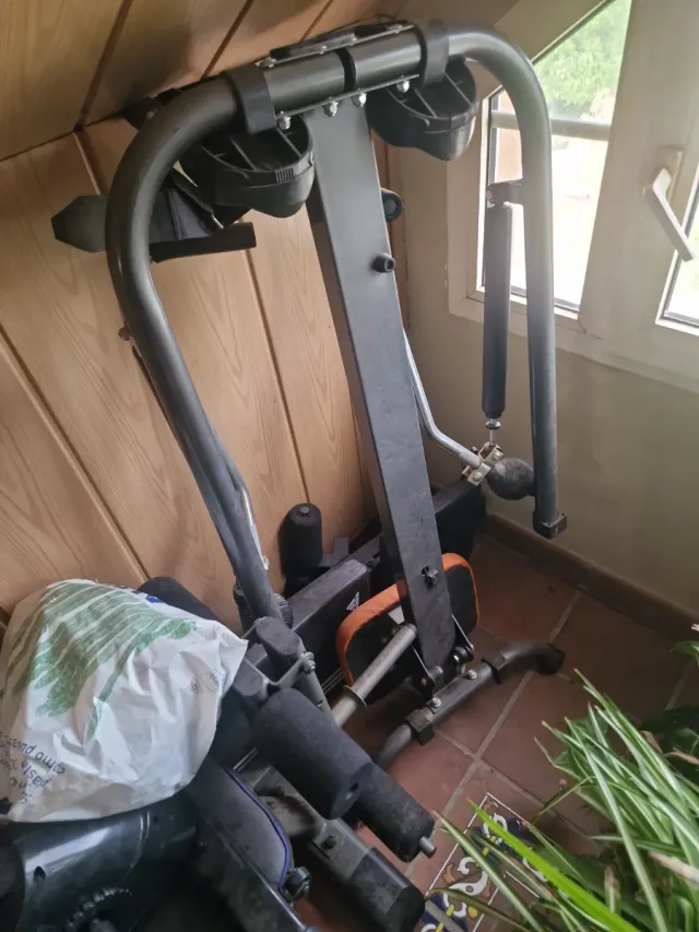 Máquina de remo para ejercitarse en casa. - Estructura metálica. - Asiento acolchado. - Pedales ajustables.