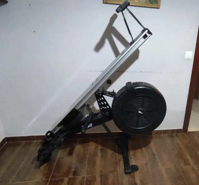 Máquina de remo de la marca Crivit. - Diseño plegable para fácil almacenamiento. - Rueda de resistencia negra. - Asiento y manillar negros.