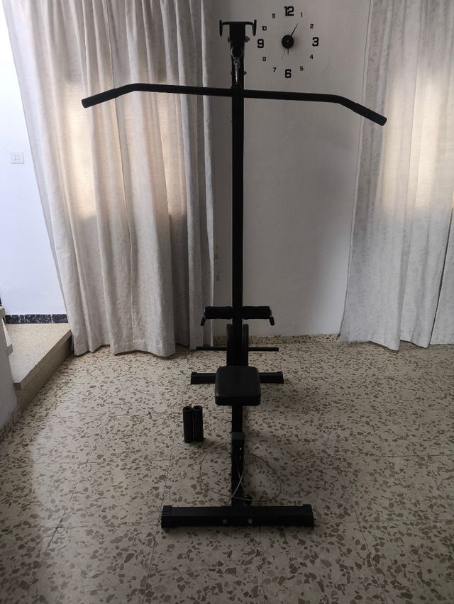 - Incluye barra para hacer espalda y barra para hacer bíceps y triceps.