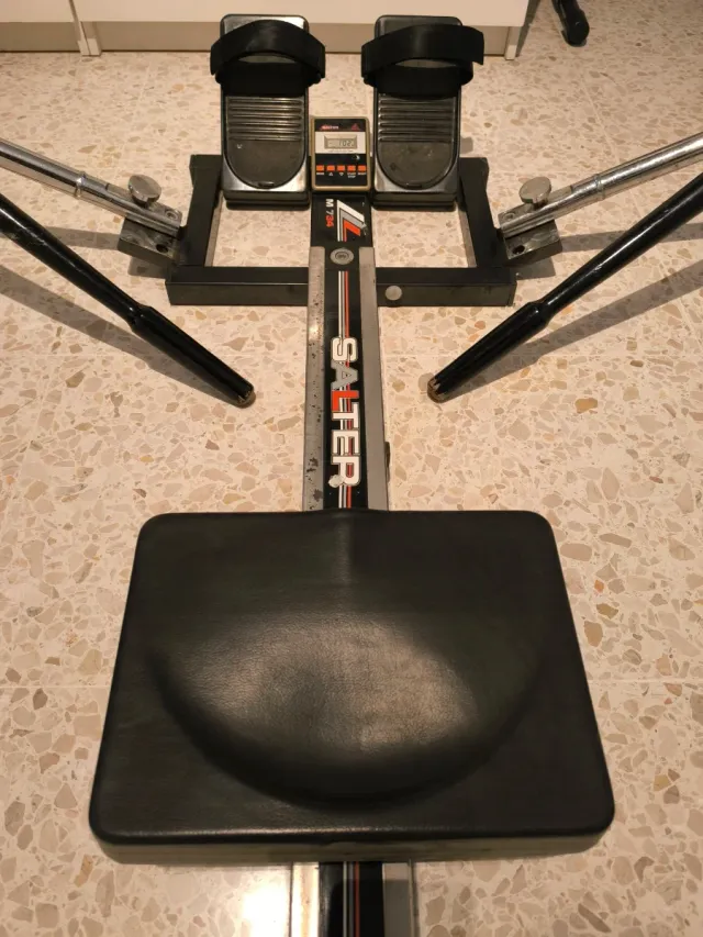 Detalles del productoMáquina plegable de remo de la marca SALTER con palas de madera. Construcción muy robusta.