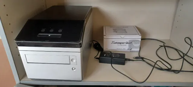 Detalles del productoMáquina para crear sellos pre-entintados Xstamper Quix. Incluye el dispositivo principal y su adaptador de corriente.