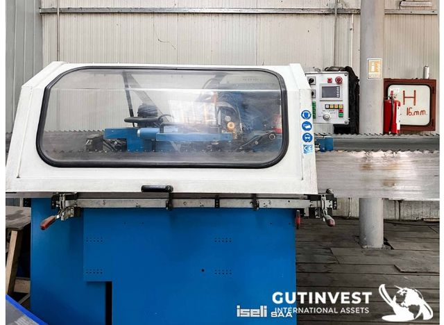 Máquina de soldadura Stellit totalmente automática para empaquetar los dientes de hojas de sierra de cinta, hojas de sierra alternativa y hojas de sierra circular mediante el proceso de soldadura por resistencia. Además del proceso de soldadura por plasma, ISELI esteliza sus hojas de sierra de cinta, sierra alternativa y sierra circular con el proceso de soldadura por resistencia. Grosor de la hoja: 0,8 - 3,2 mm. Sierras de cinta: Paso de dientes: 13 - 115 mm, Longitud de hoja estándar: desde 5.500 mm, Longitud de hoja opcional: desde 4.700 mm.