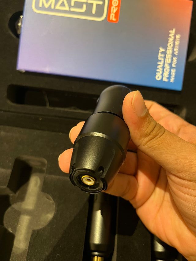 Maquina inalámbrica. Viene con dos baterias recargables (cargador tipo C) y su estuche que simula piel, tiene un paquete de agujas de membrana.
