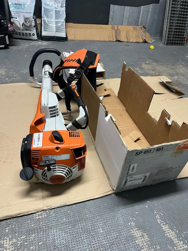Detalles del productoMáquina de varear Stihl SP 451 en color naranja y blanco.