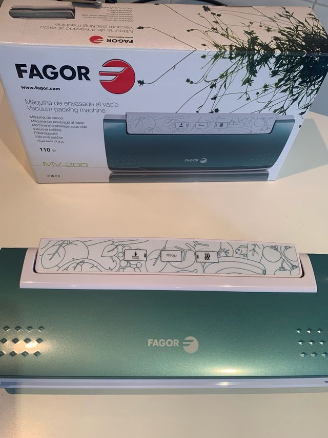 Máquina envasadora al vacío Fagor modelo MV-200. - Potencia de 110W. - Diseño en color verde metálico.