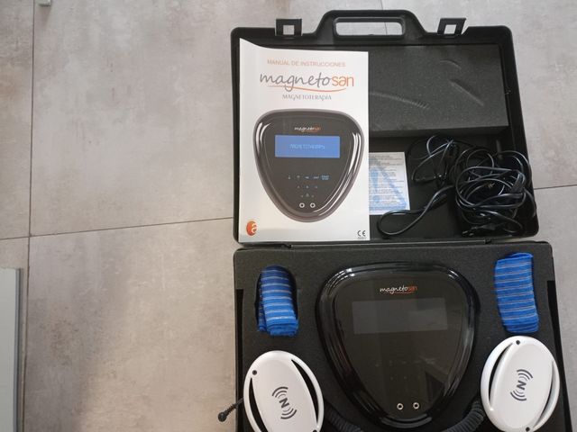 La magnetoterapia se aplica en clínicas de rehabilitación. Su eficacia está probada y avalada por numerosos estudios médicos. Efectos positivos de la magnetoterapia: Acción anti-inflamatoria. Aumento de la resistencia ósea y la mineralización. Acelera la calcificación en las fracturas, mejora el dolor en artrosis, artristis, tendinitis. . Incluye: - Aparato de magnetoterapia, seminuevo. Apenas usado, fácil de usar, incluye libro dinstrucciones
