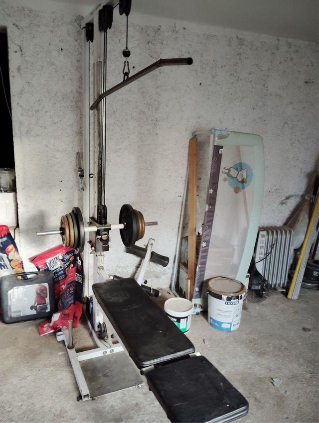 Detalles del productoSe vende máquina multiusos para gimnasio en casa, ideal para entrenar diferentes grupos musculares. El banco es ajustable.