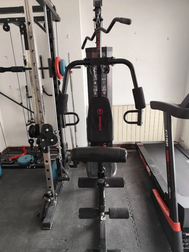 Equipo de gimnasio para entrenamientos completos en casa. Ideal para trabajar diferentes grupos musculares. - Estructura robusta de acero. - Asiento acolchado.