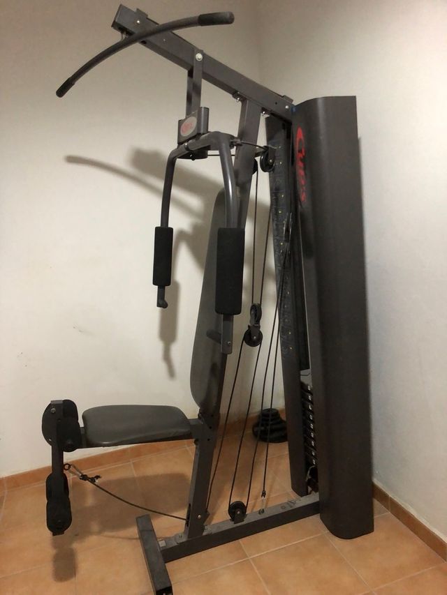 Detalles del productoMáquina de gimnasio multifuncional para entrenar en casa. Ideal para trabajar diferentes grupos musculares.